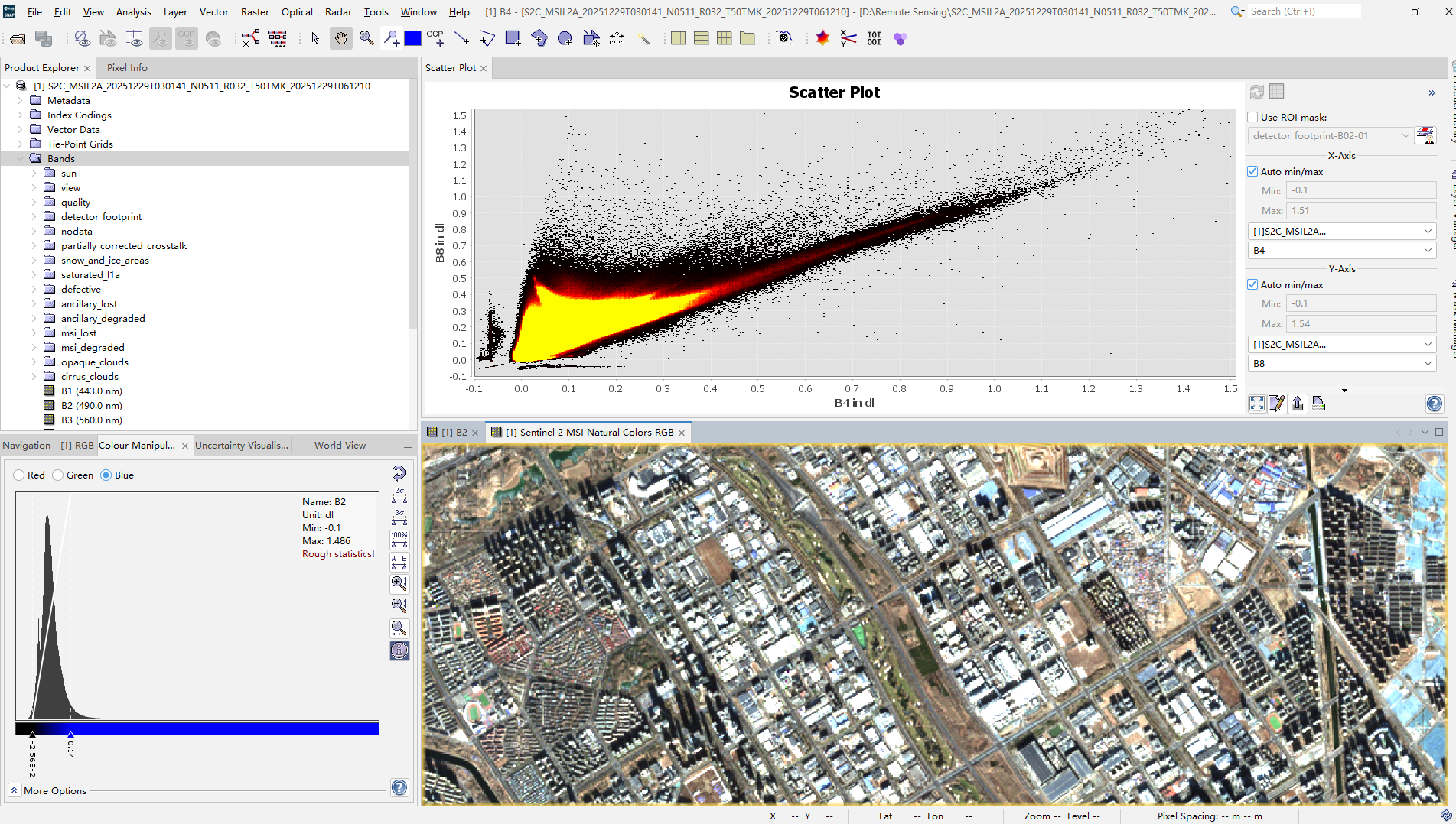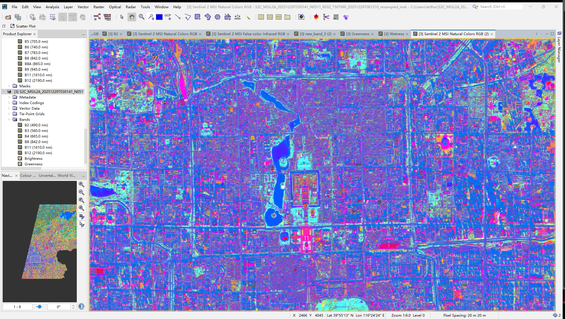 The first lecture set up something that turned out to be a useful frame for the rest of the module: Earth observation data rarely reaches you raw. The EO Dashboard is a good illustration — what looks like a simple interface for exploring NO₂ levels or vegetation cover is actually the end of a long pipeline involving atmospheric correction, radiometric calibration, index computation, and spatial aggregation. The practical made this concrete: loading Sentinel-2 imagery of Beijing required decisions about which bands to use, what resolution to resample to, and how to interpret the outputs — none of which are neutral choices.